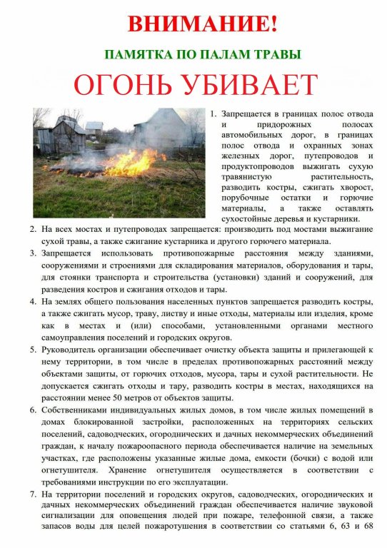 Информационная памятка "Пожароопасный сезон: главные правила безопасности"
