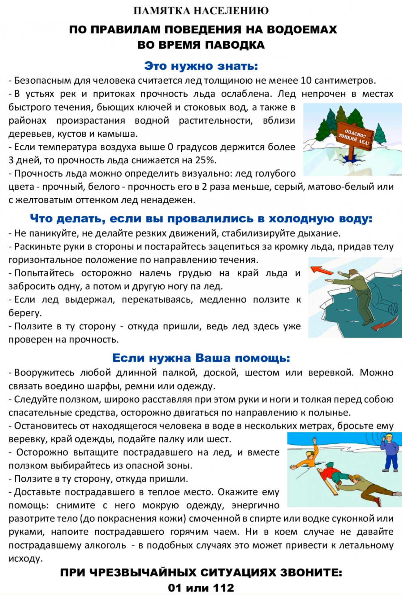 Памятка о профилактике несчастных случаев на водоёмах во время паводка