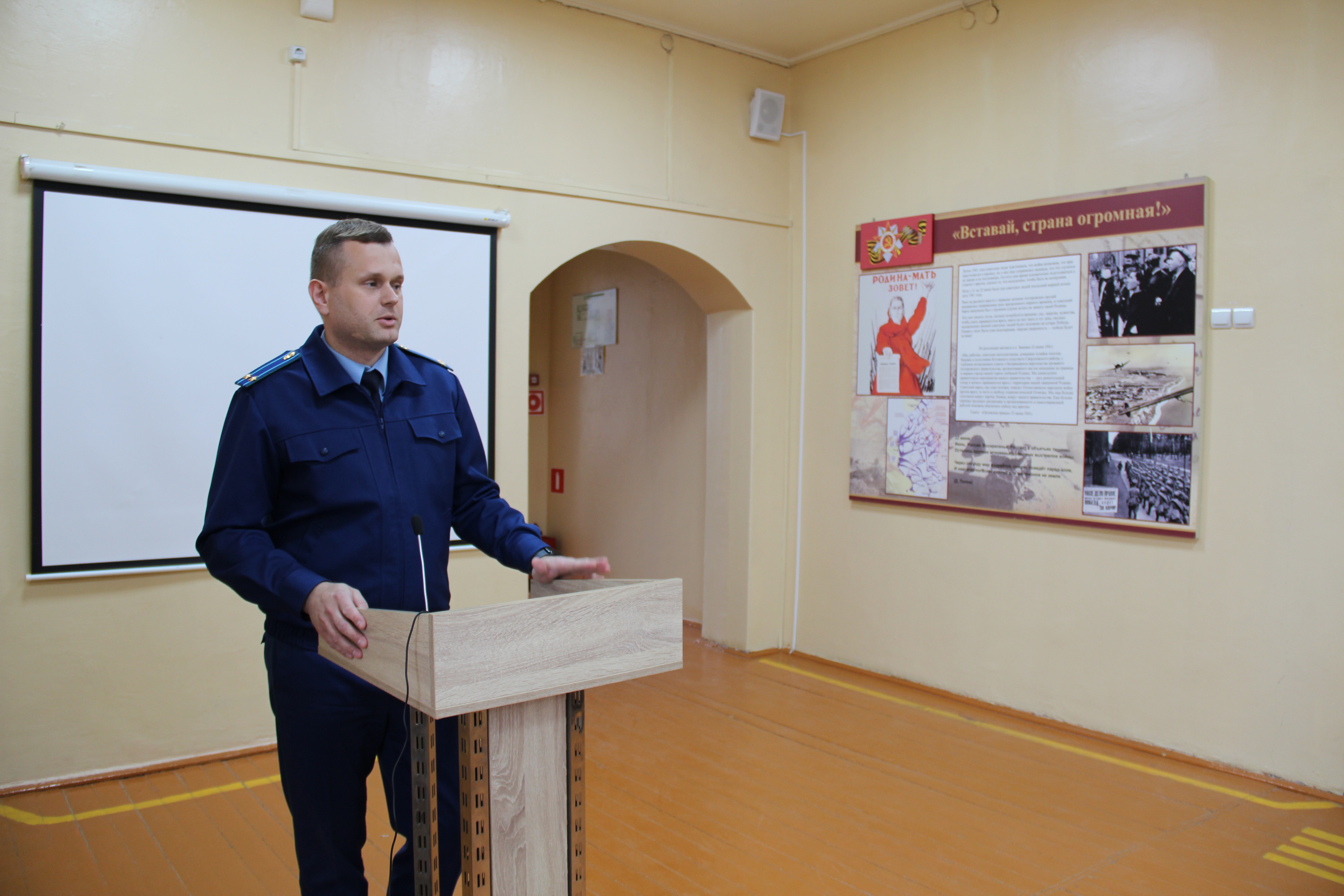 На встрече с учениками 8 – 11 классов выступили лектор Общества «Знание» Новикова Елена Вячеславовна и прокурор Свердловского района Максим Андреевич Михайлов.
