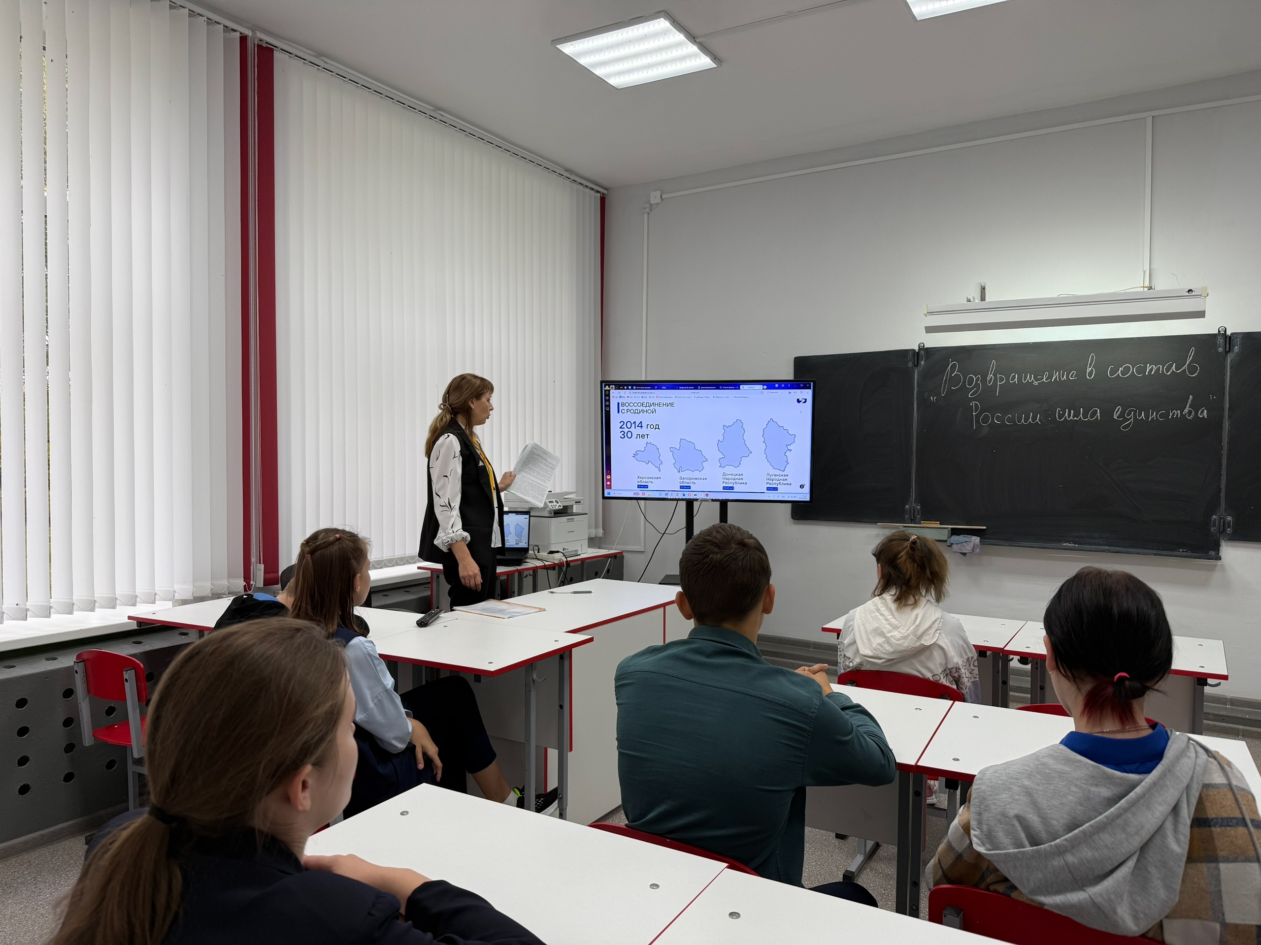 Сегодня в нашей школе состоялся увлекательный классный час, посвящённый теме возвращения Донецкой Народной Республики, Луганской Народной Республики, Запорожской области и Херсонской области в состав Российской Федерации!