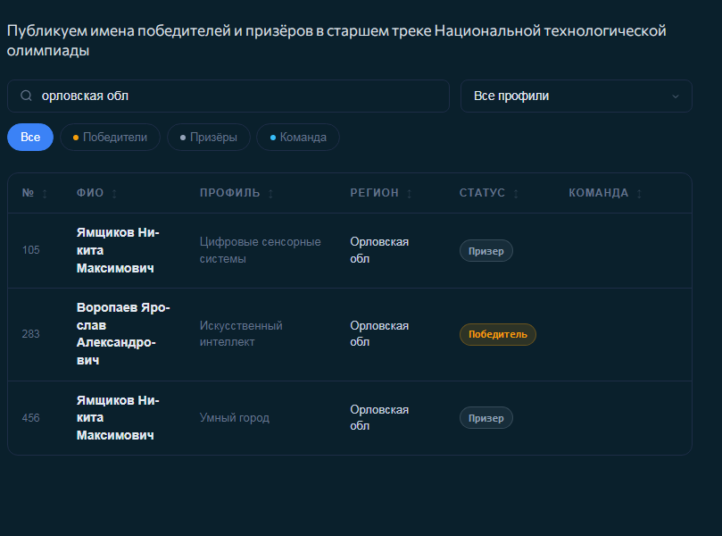 Ярослав Воропаев, ученик 11 класса школы № 12 г. Орла, одержал победу в профиле «Искусственный интеллект». Его успех — результат упорной работы, глубоких знаний и интереса к современным технологиям.