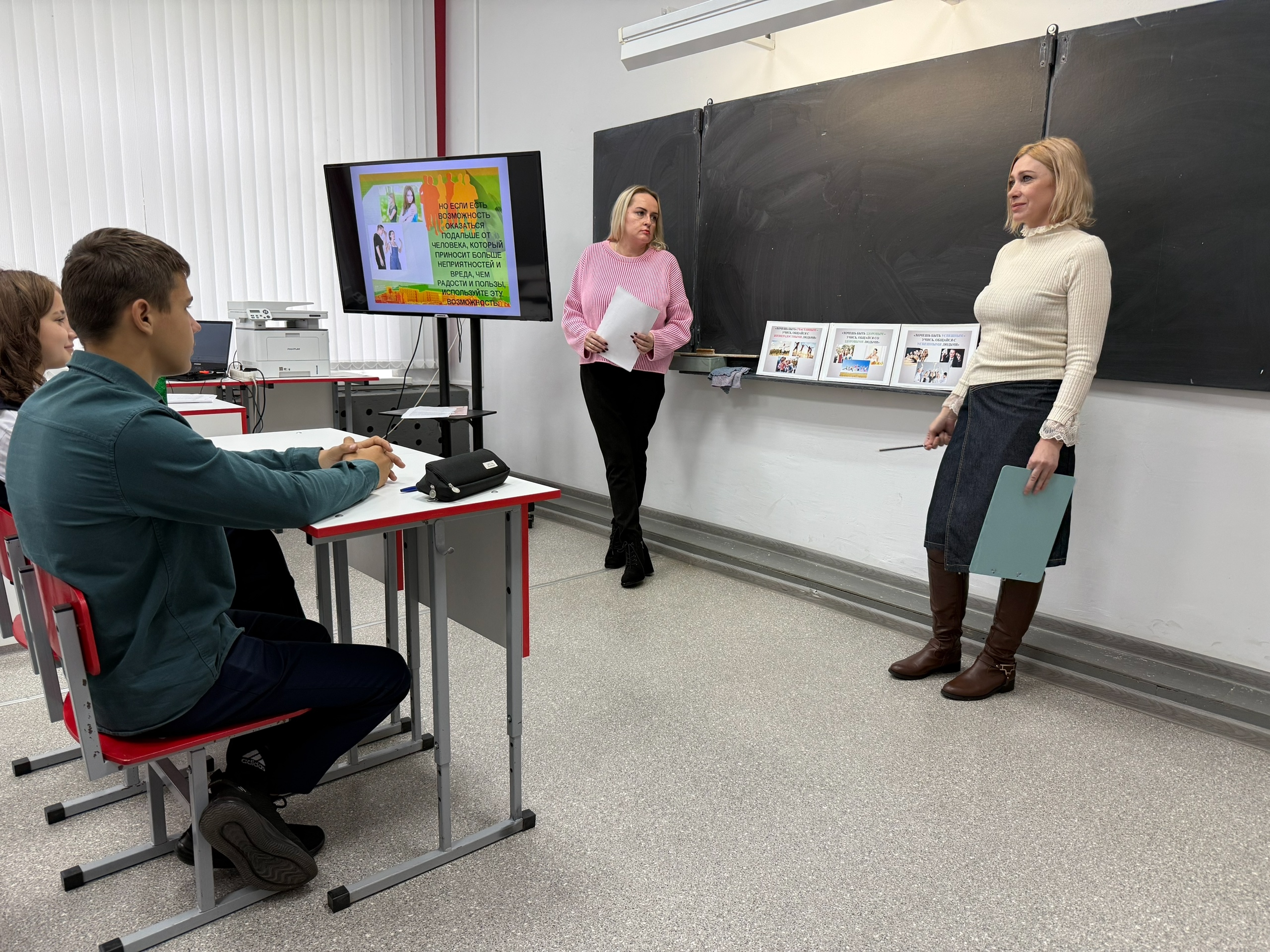 29 сентября в нашей школе прошла очень важная встреча с сотрудниками центра БУ ОО «КЦСОН Свердловского района». Темой обсуждения стали: вред наркотиков, влияние окружающей среды на личность и последствия использования электронных сигарет.