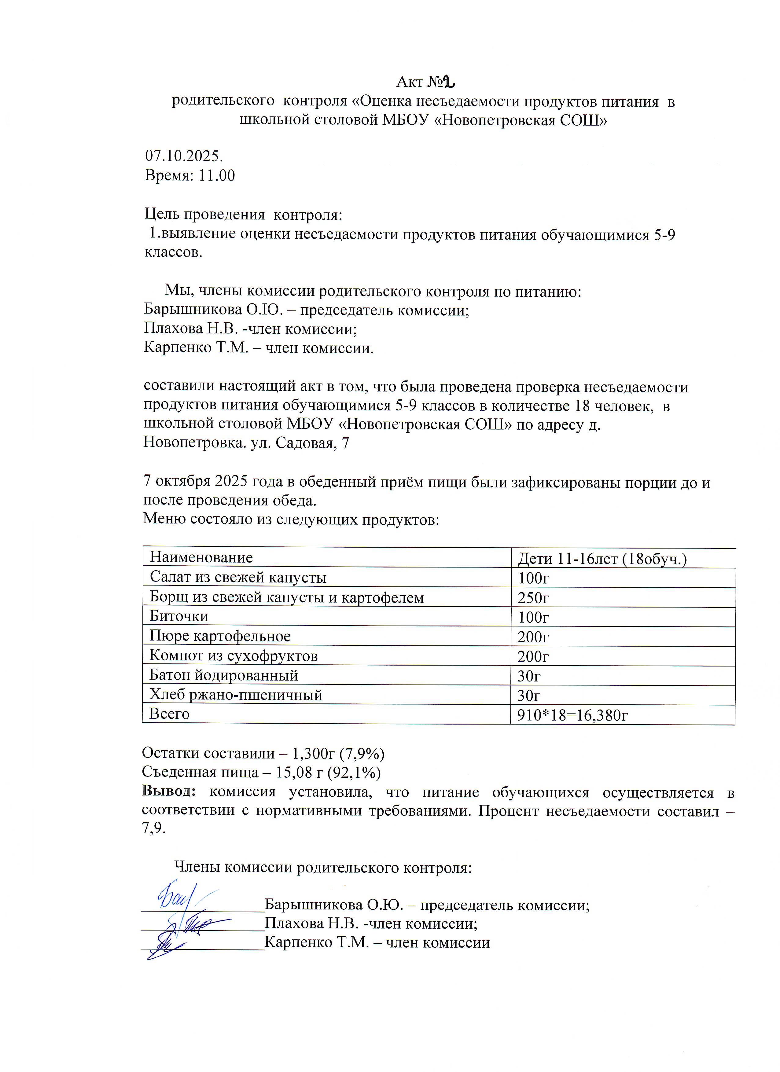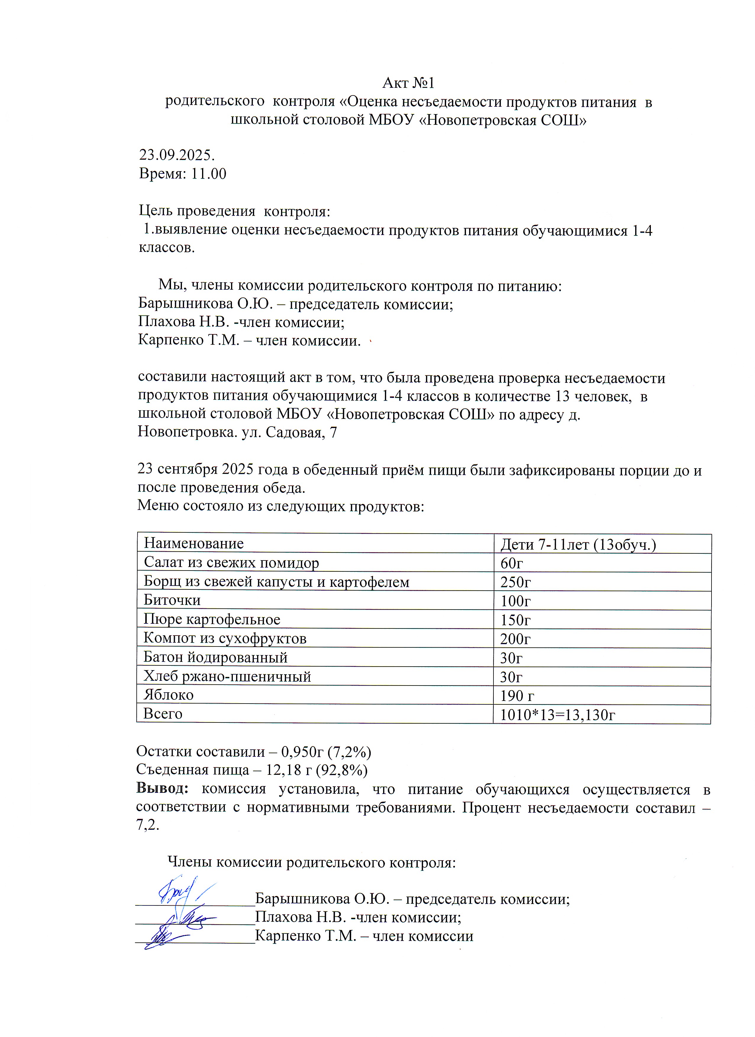 - Положение о комиссии по приемке продуктов питания от поставщиков МБОУ"Новопетровская СОШ"